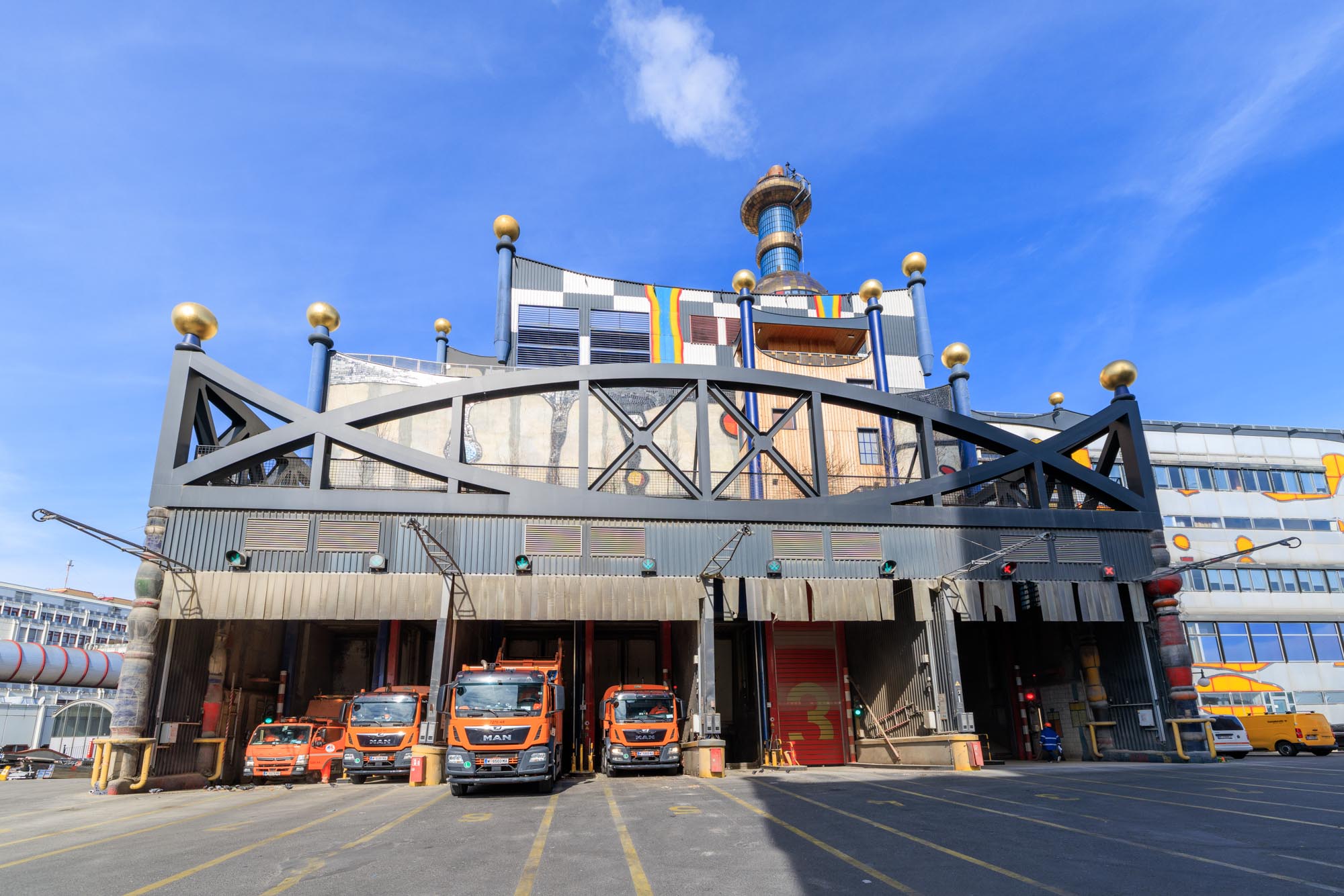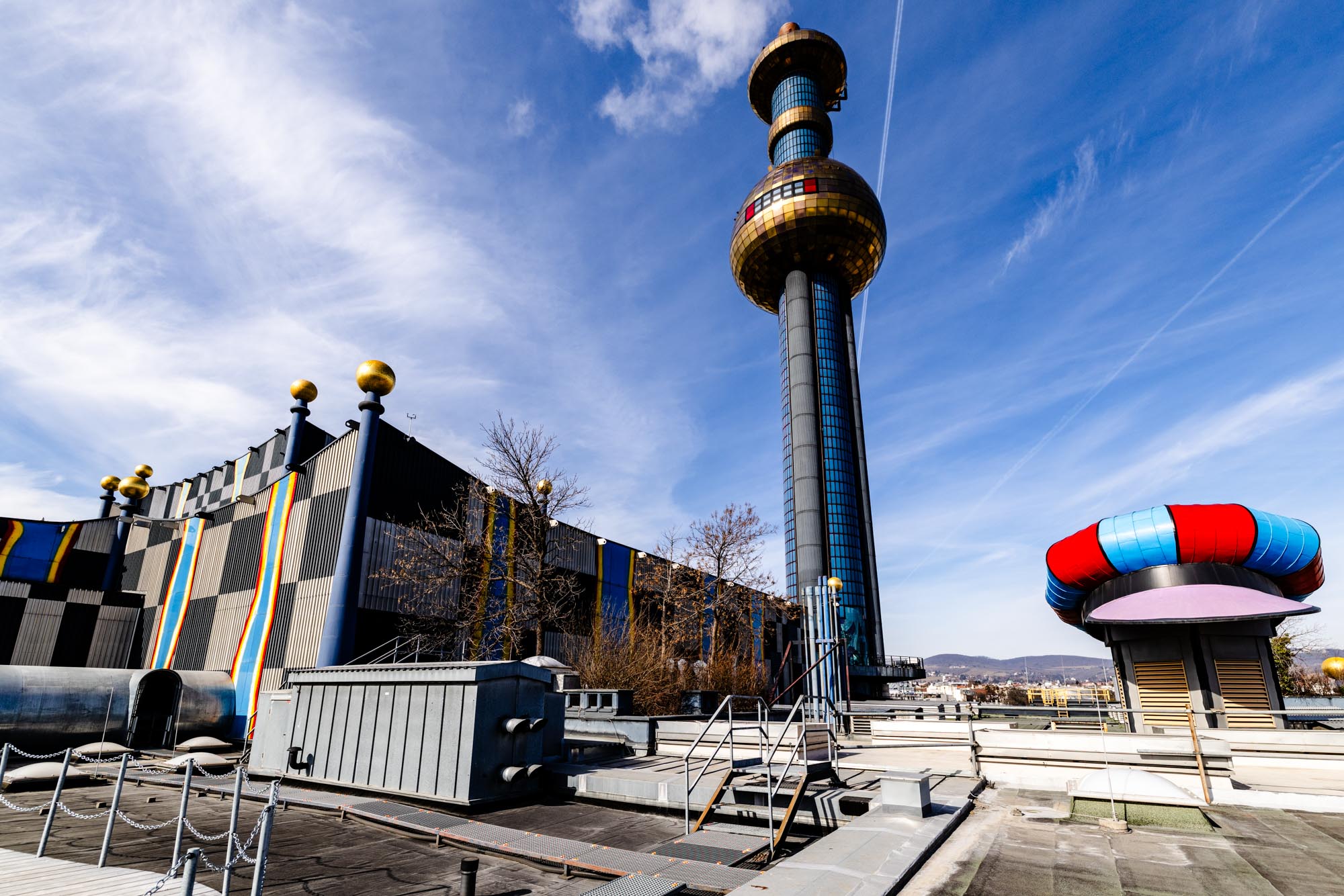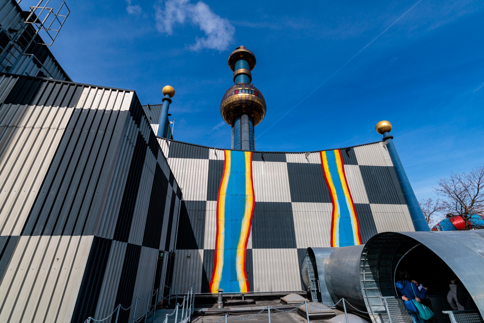 Besonders markant: Die farbenfrohe, unkonventionelle Fassade stammt von keinem Geringeren als Friedensreich Hundertwasser. Ein visionärer Künstler, der mit seinem Entwurf Umweltbewusstsein und Ästhetik miteinander verbunden hat.
