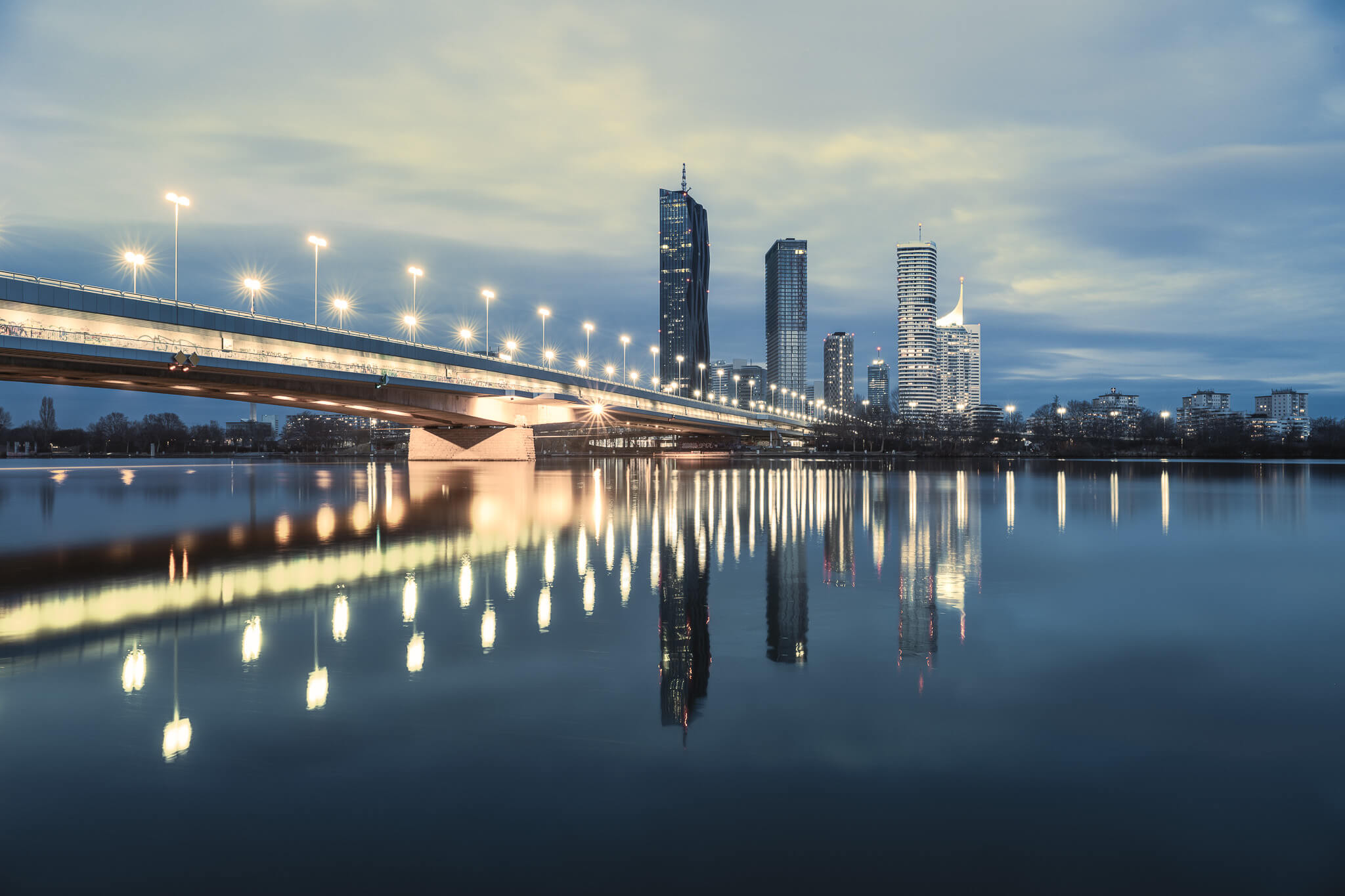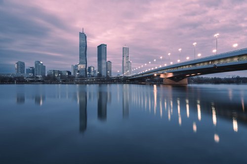 Unser Fotowalk startet am Donauufer beim Mexikoplatz, wo sich im Abendlicht die beeindruckende Skyline der DonauCity in der Donau spiegelt. Diese Kulisse bietet ideale Voraussetzungen für ausdrucksstarke Reflexionen, HDR-Aufnahmen, Langzeit- und Mehrfachbelichtungen.
